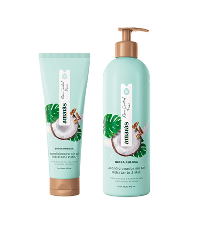 Te ayudamos a cuidarlos con esta línea sin sal y sin sulfatos, basado en el respeto de la forma y la belleza natural de tus rizos.